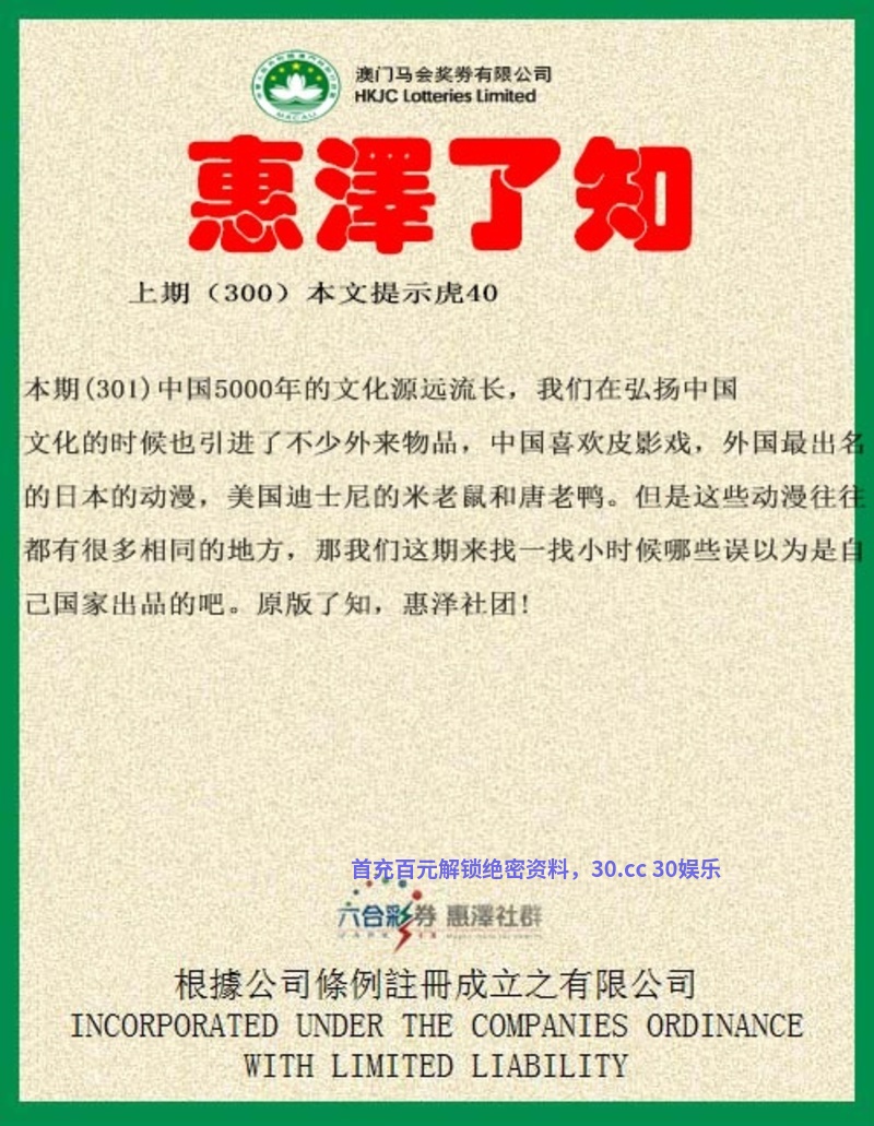 | [惠泽了知] 301期:中国5000年的文化源远流长,我们在弘扬中国文化的时候也引进了不少外来物品,中国喜欢皮影戏,解阴肖鼠龙蛇马狗猪。外国最出名的日本的动漫,美国迪士尼的米老鼠和唐老鸭。但是这些动漫往往都有很多相同的地方,那我们这期来找一找小时候哪些误以为是自己国家出品的吧。 [惠泽九肖]:鼠龙蛇马狗猪虎猴牛 [惠泽平尾]:0000尾 |